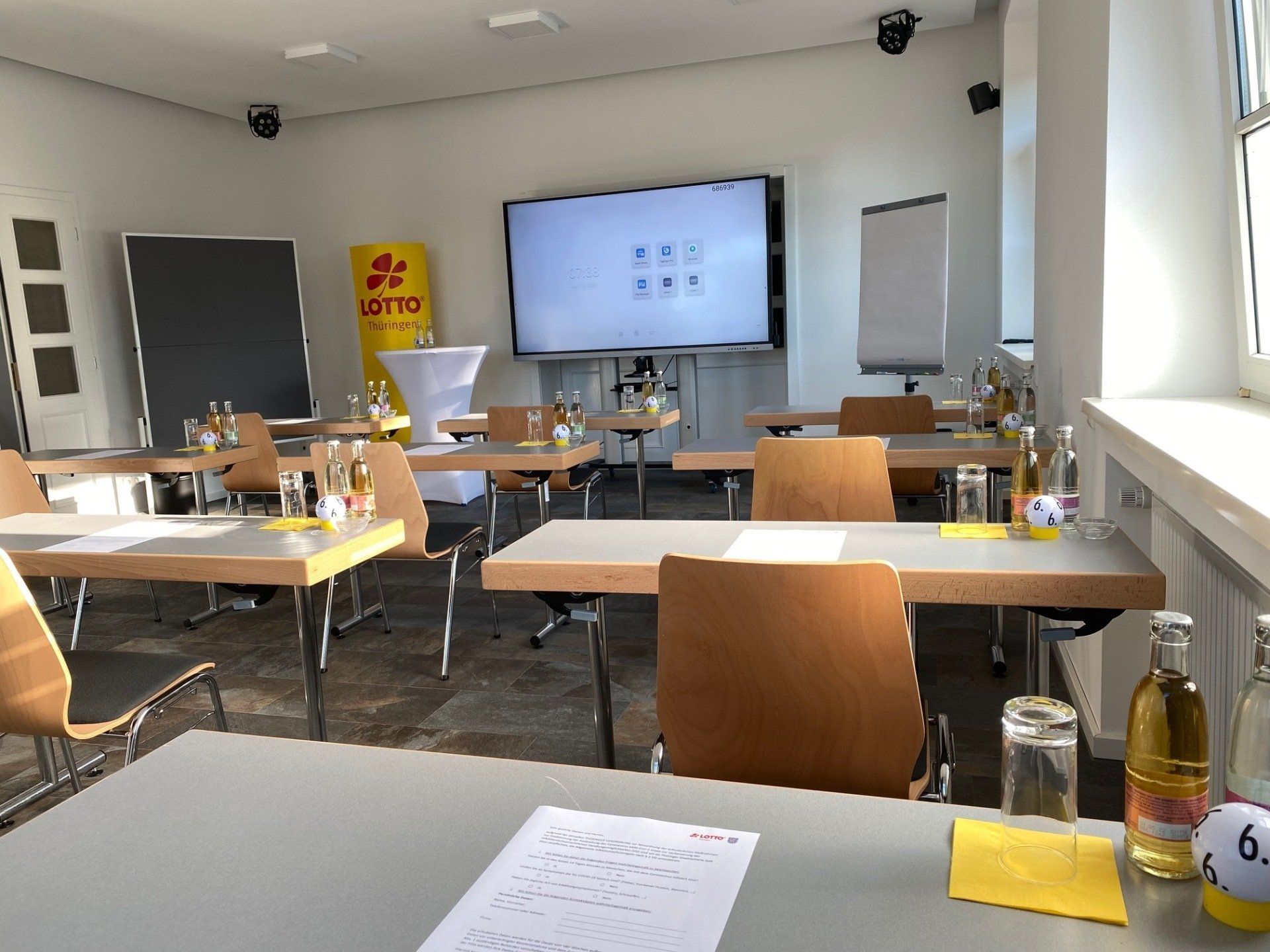 Für Seminare stehen zur Verfügung: Digitales Whiteboard für Präsentationen inkl. Flipchart-Funktion, W-Lan. Das Board ist auch für hybride Veranstaltungen geeignet. Die zugehörige Kamera- und Tontechnik ist vorhanden.