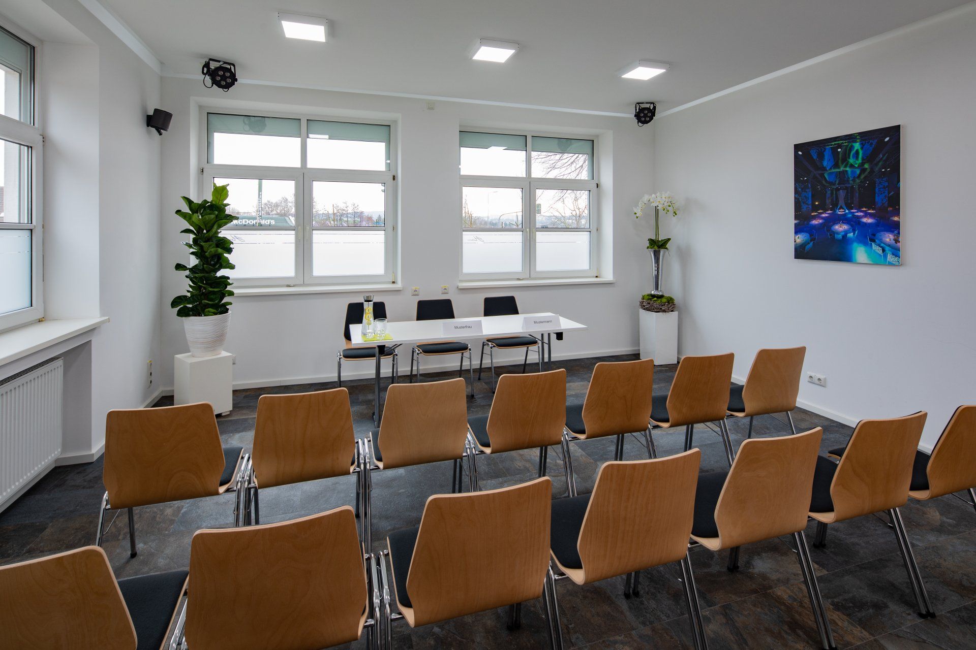 arbeiten kann. In den zwei Räumen finden bis zu 50 Gäste für eine Feier und bis zu 80 Gäste in Reihenbestuhlung für ein Seminar Platz, in den Sommermonaten lädt die großzügige Terrasse zum Verweilen im Freien ein. Bei der Auswahl Ihres Caterers sind Sie völlig frei, Parkplätze sind ausreichend vorhanden.